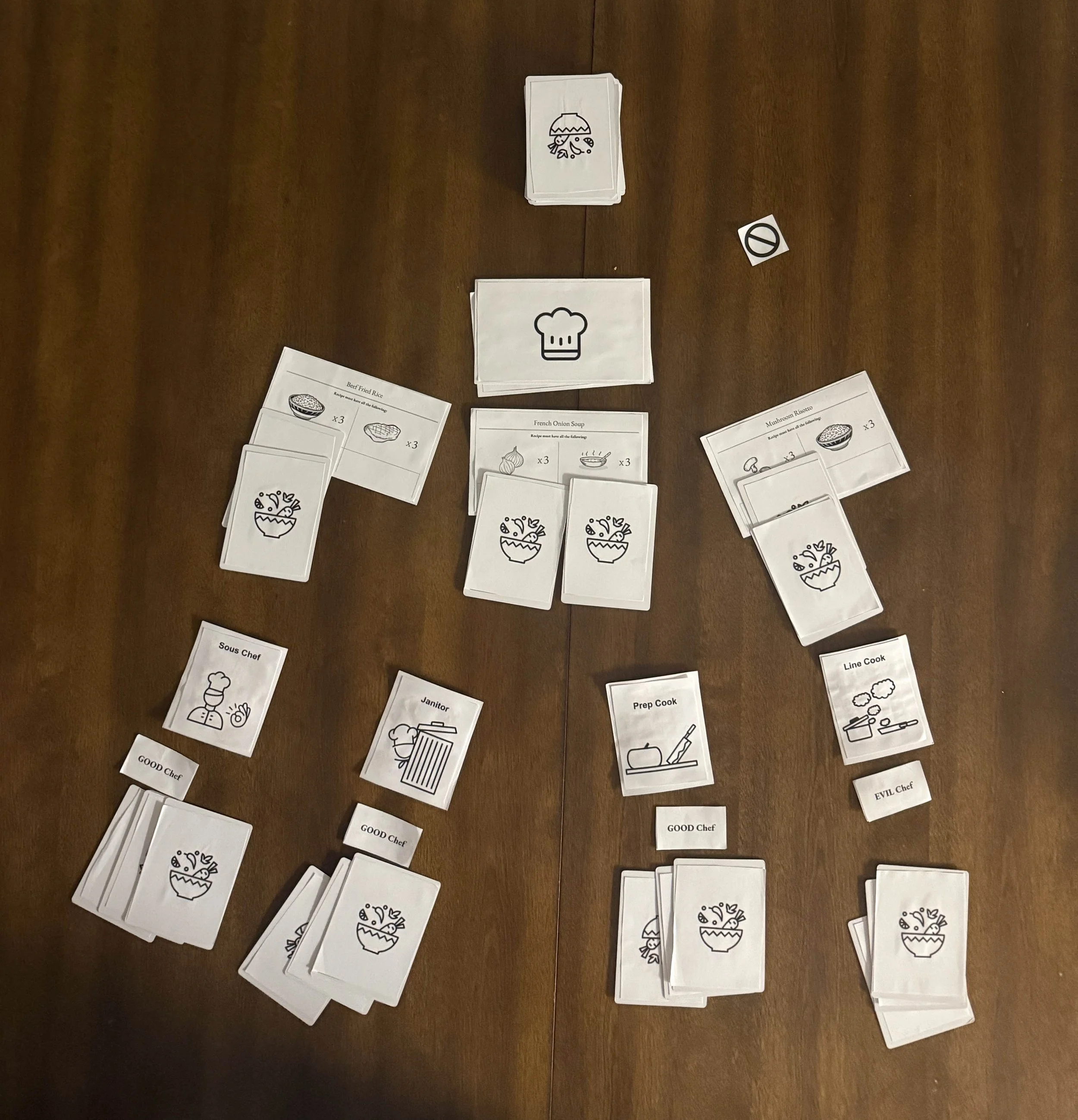 Created a role-based, hidden traitor game, where you must appease a food critic with good dishes while trying to find and mitigate the damages of an evil chef among you.